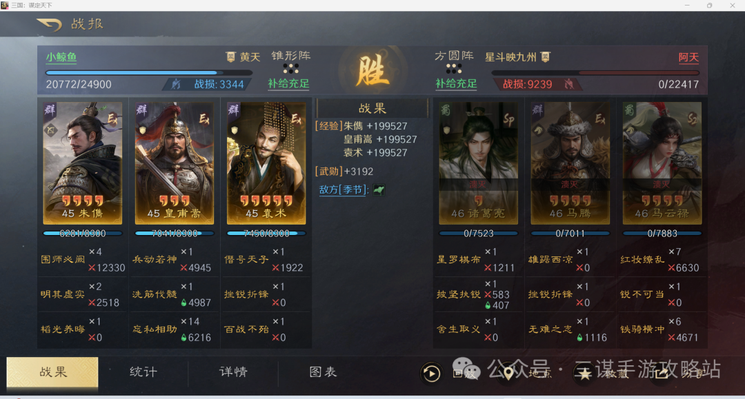個人更推薦魚鱗陣,一個是諸葛亮加成下的魚鱗陣前排可以有一個不低的規(guī)避率。